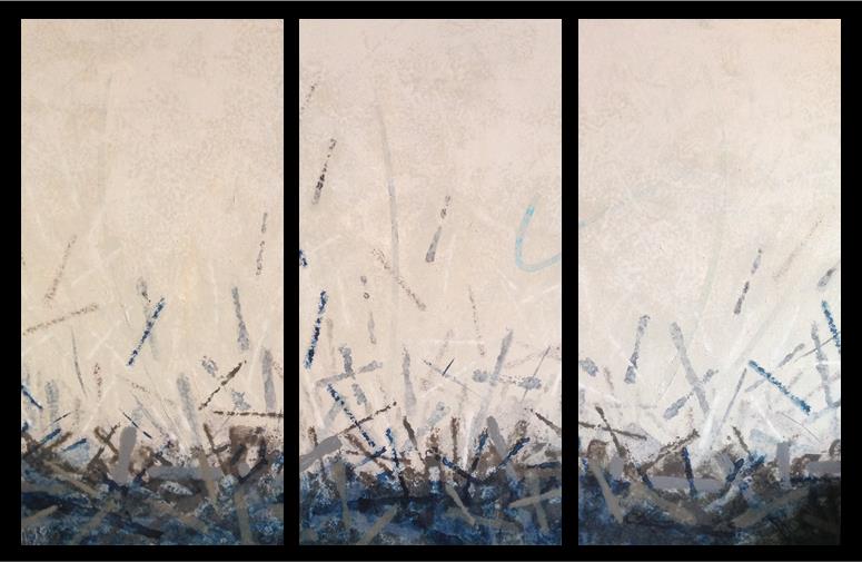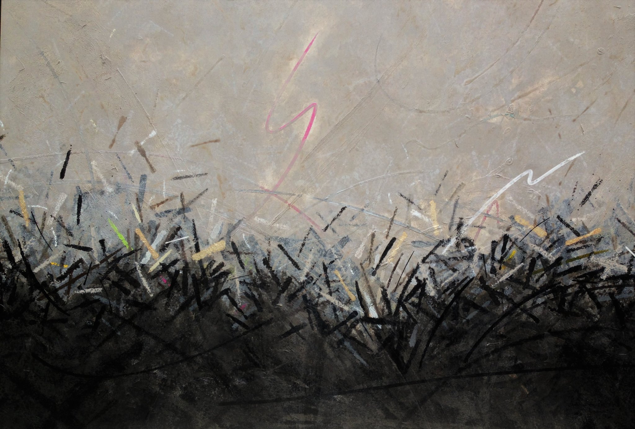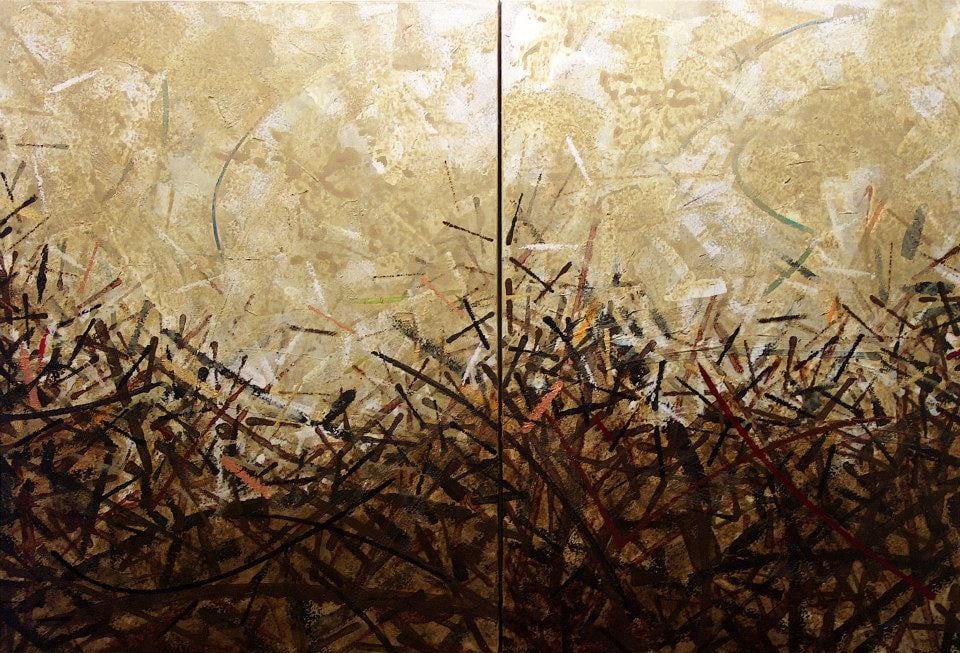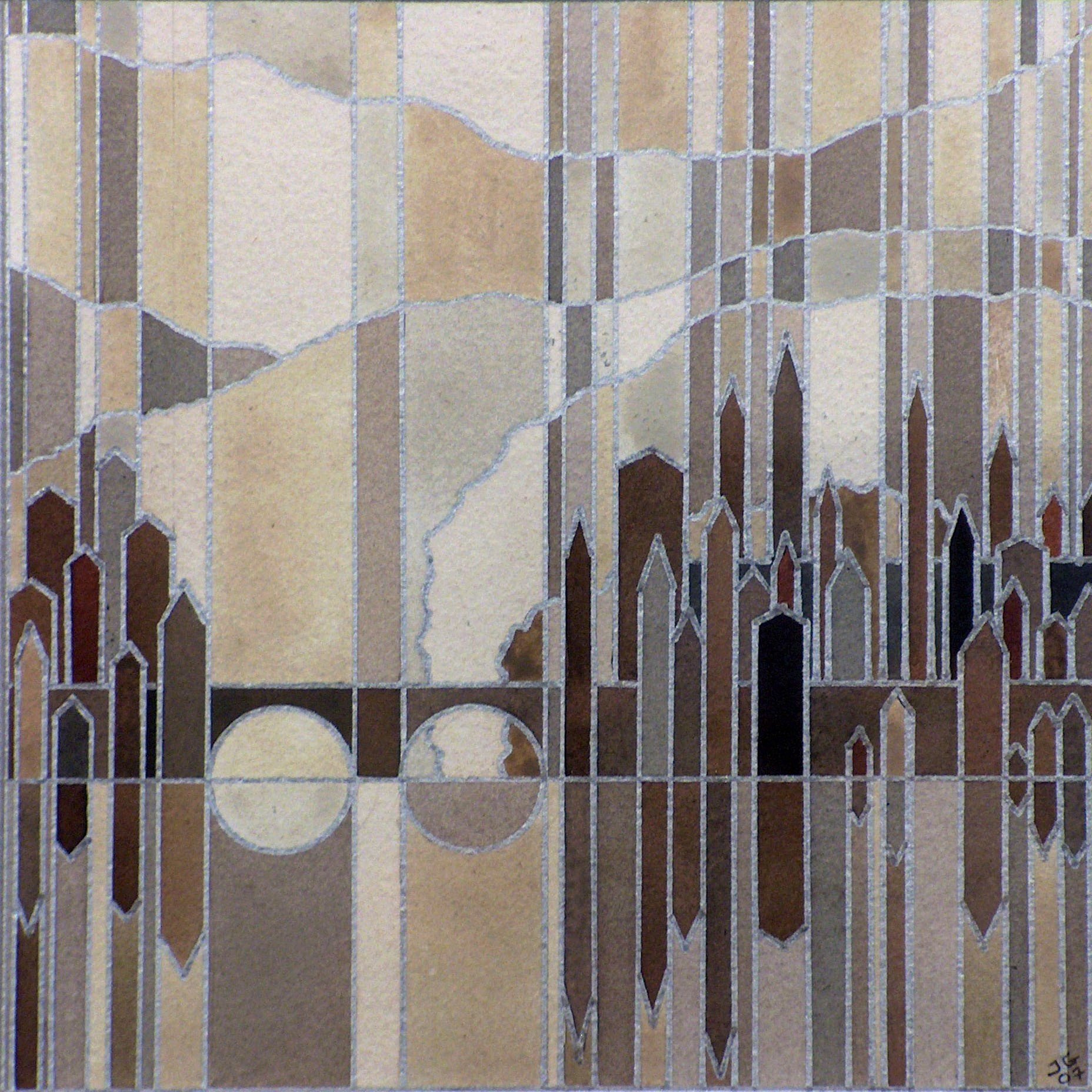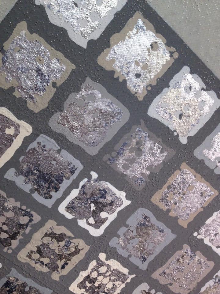 PUIS TRAVAILLÉES PAR DE NOMBREUSES COUCHES D'ENCRES ET D'ACRYLIQUES DE COULEURS TON SUR TON, POUR UN RENDU PRESQUE COMME DE LA SOIE.