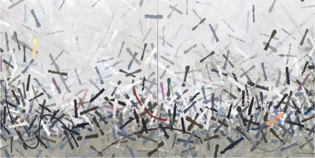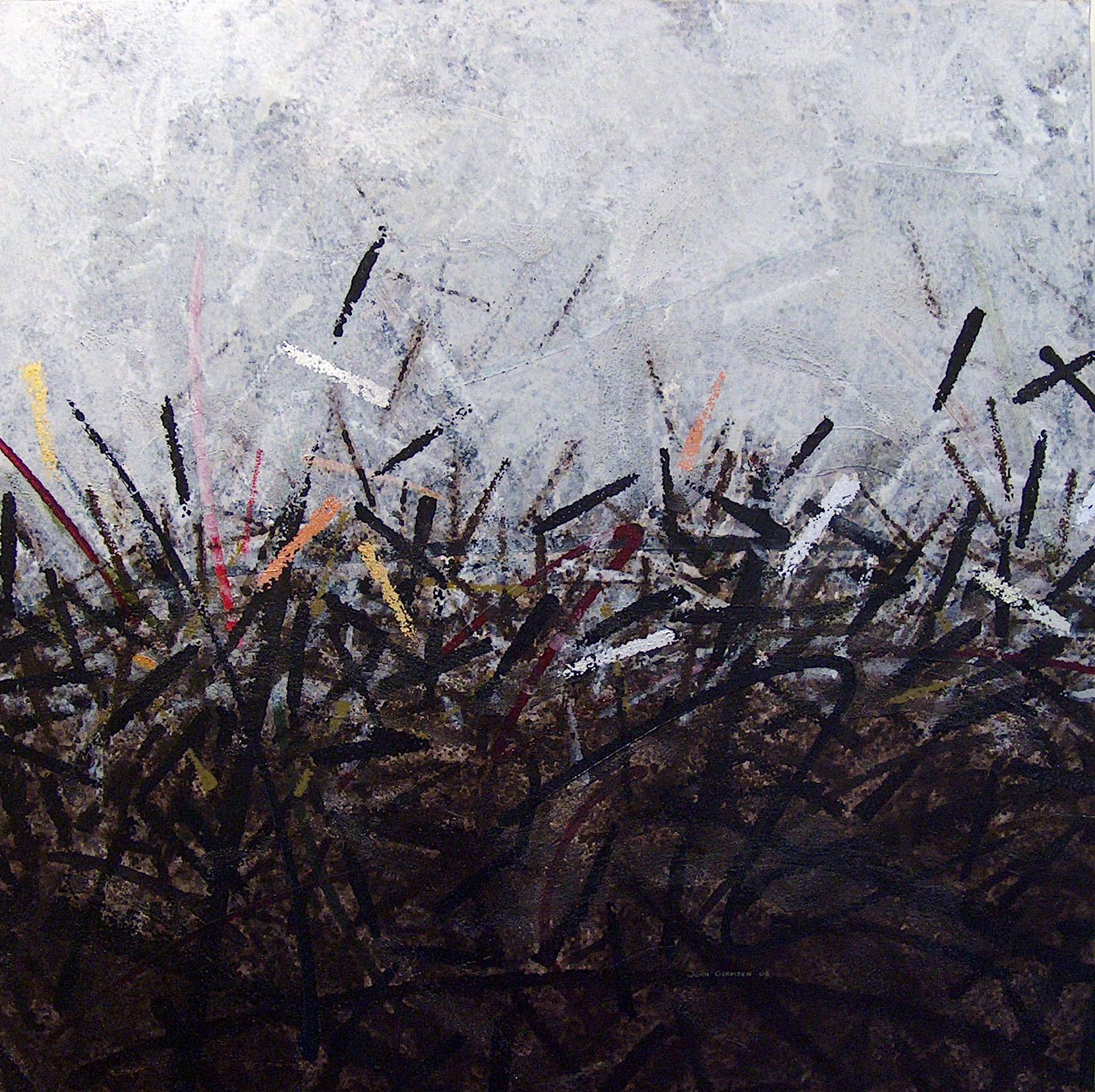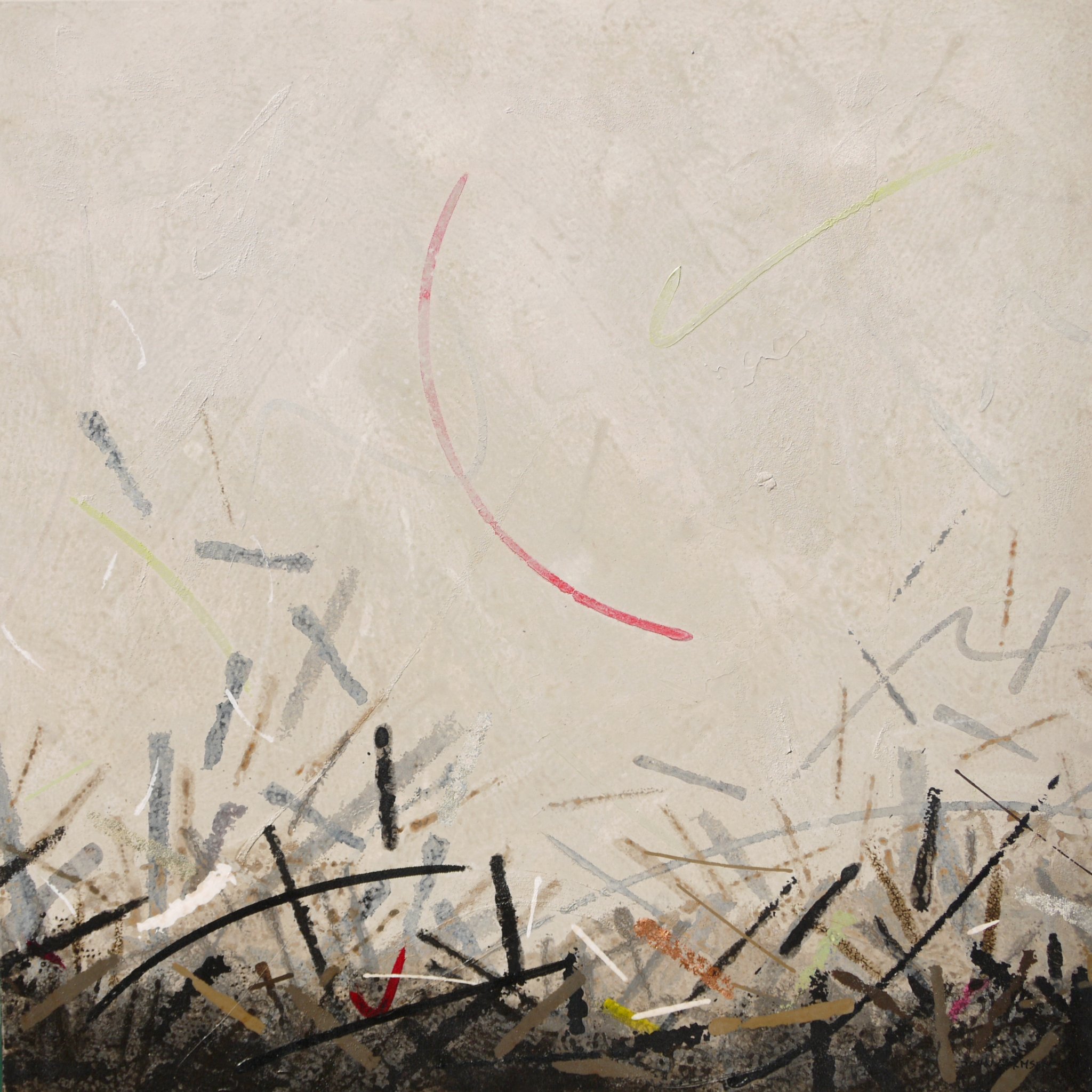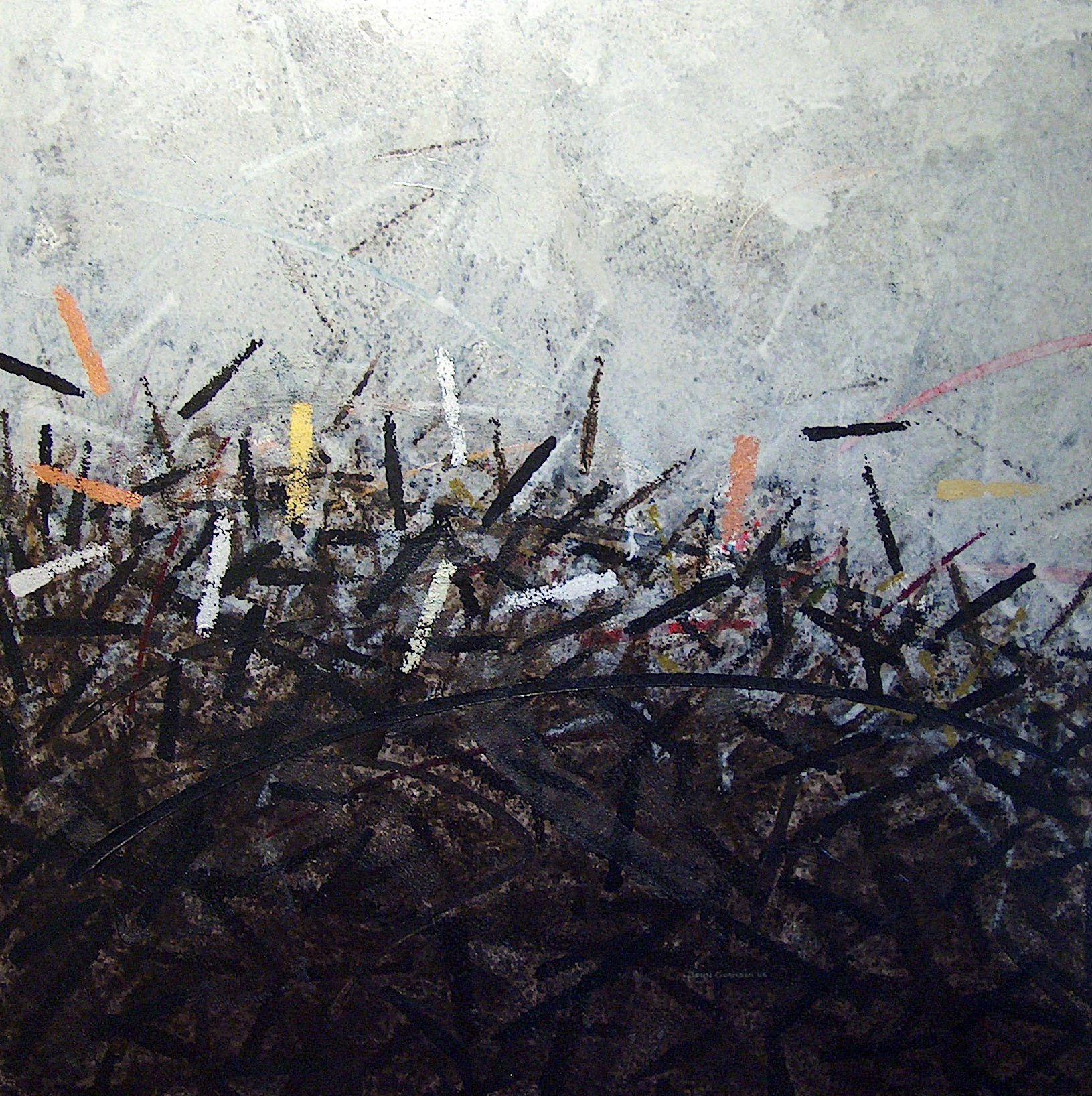 PUIS TRAVAILLÉES PAR DE NOMBREUSES COUCHES D'ENCRES ET D'ACRYLIQUES DE COULEURS TON SUR TON, POUR UN RENDU PRESQUE COMME DE LA SOIE.
