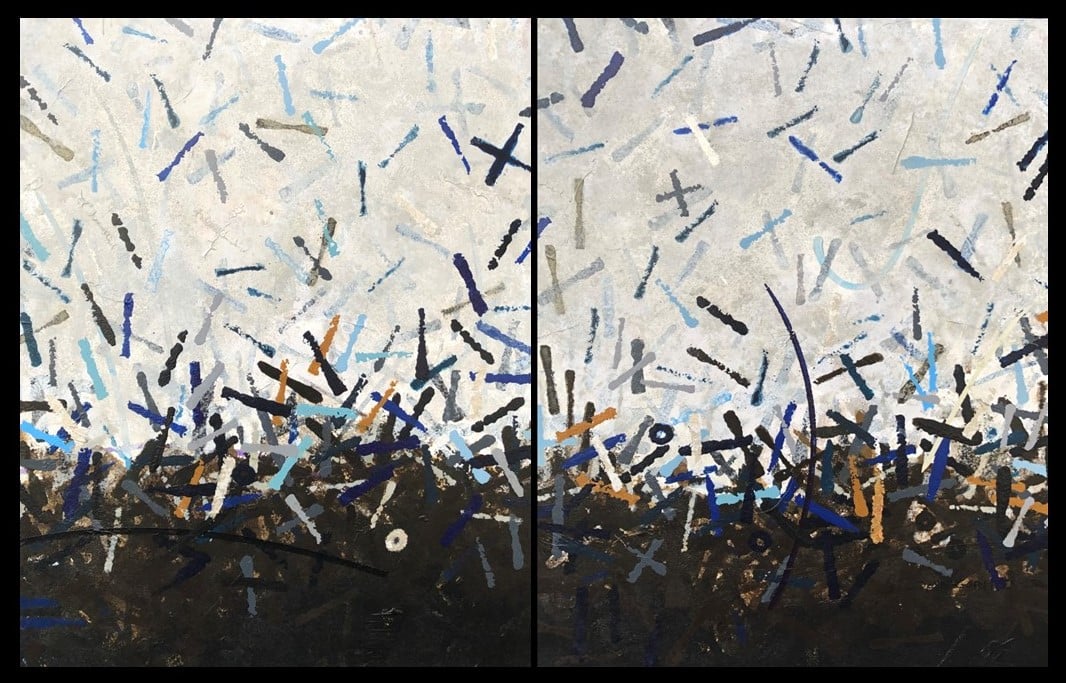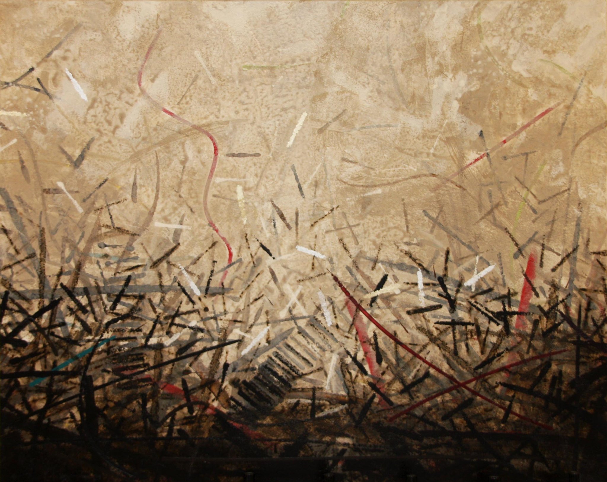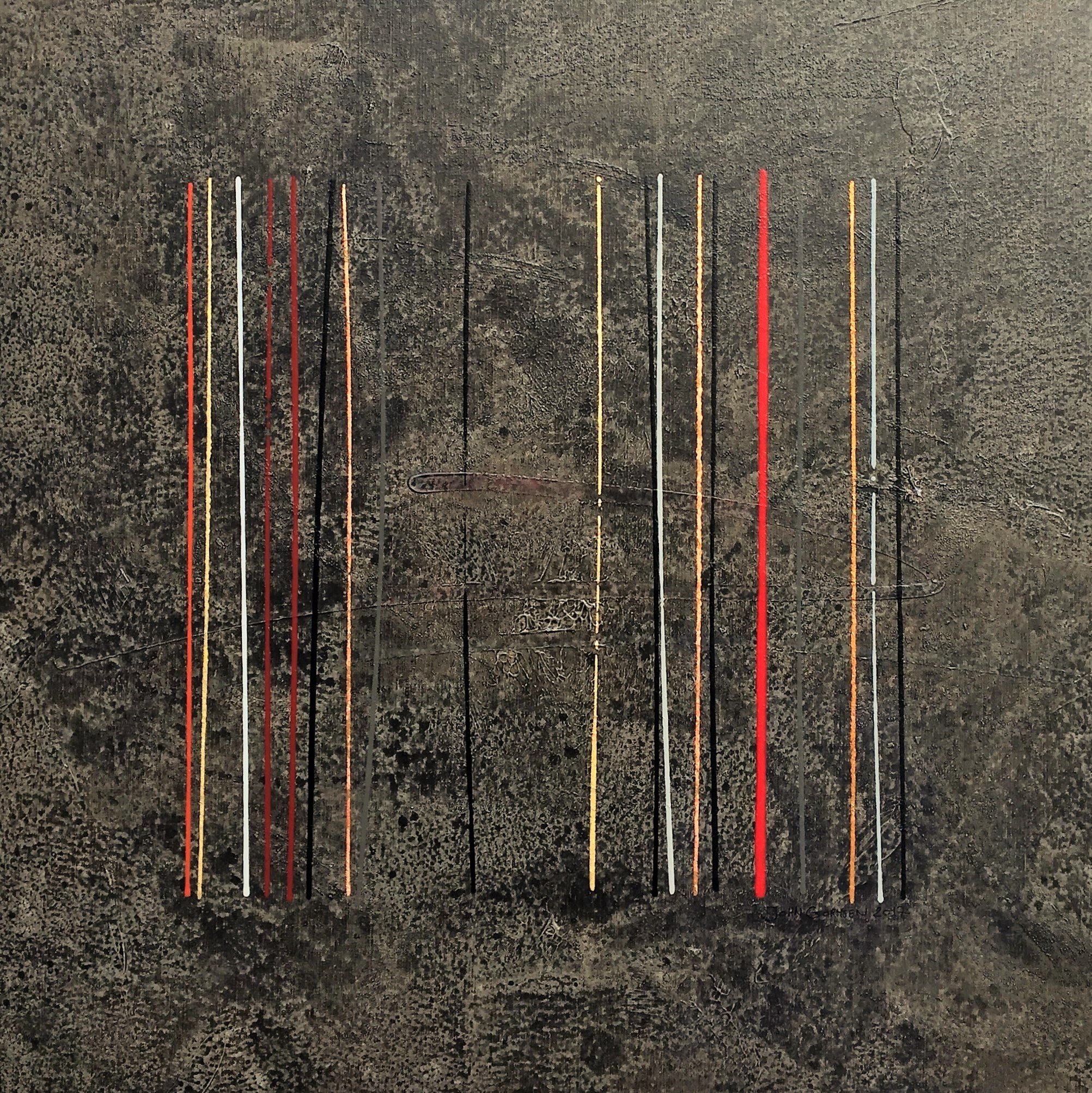 Le tout présenté sur 30 couches fluidifiées et superposées de pigmentation et d'encres. entre les couches des matières végétale et minérale