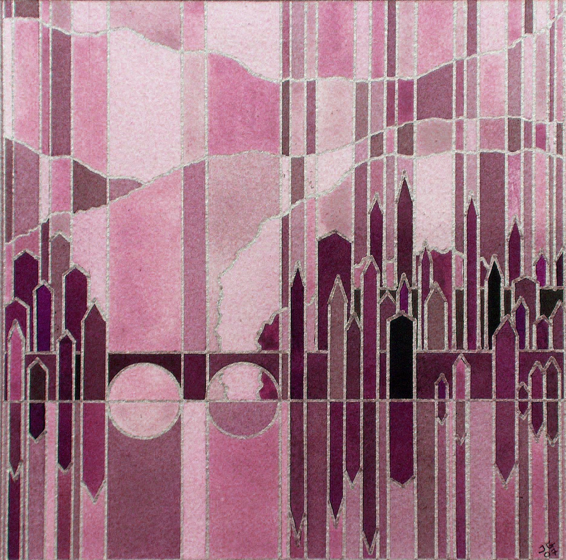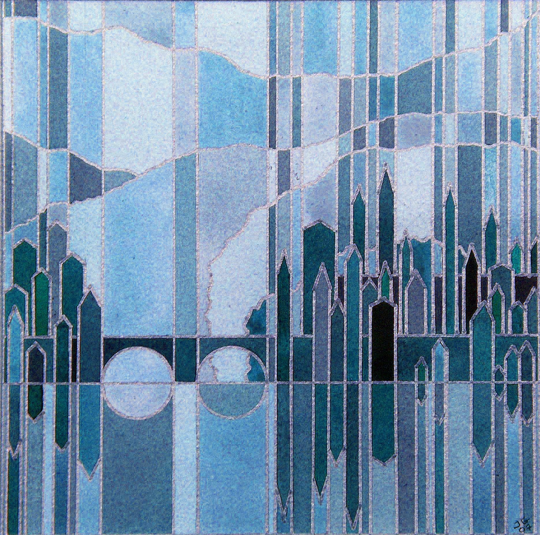 LES MONOCHROMES, DE LA FAMEUSE "VILLE IMAGINAIRE D'AVIGNON", SONT DES TRANSCRIPTIONS DU DESSIN DE L'ARTISTE, EN SÉRIGRAPHIE SUR TOILE.